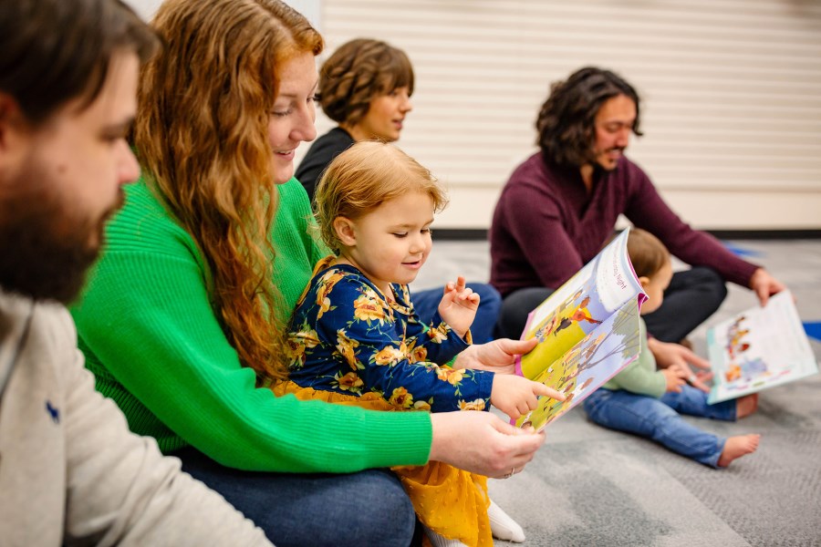 Children and their adults have opportunities to create and improvise—making up new words to songs, offering movement ideas, making silly sounds, and sharing musical ideas from the family's play at home.
